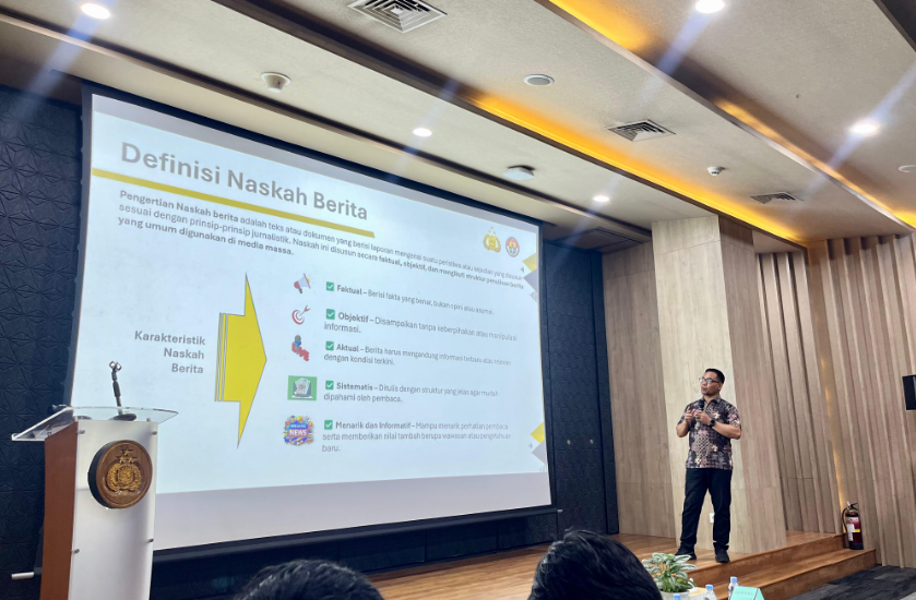 Praktisi manajemen media PT Qudo Buana Nawakara, Anjar Budi Prasetyo, turut memaparkan peran Polri sebagai badan publik informatif yang harus berlandaskan kaidah jurnalistik.